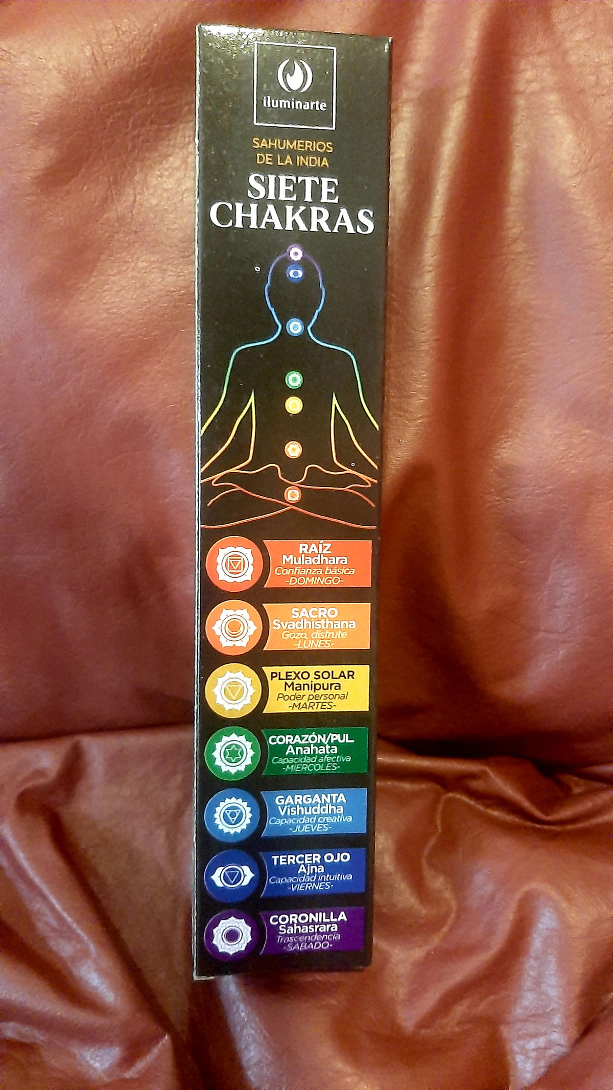 CONTIENE 21 VARILLAS. ESPECIALMENTE CREADOS PARA TRABAJAR Y ARMONIZAR LOS 7 CHACRAS, CREANDO EQUILIBRIO ENERGÉTICO EN EL AMBIENTE. ENCIENDA UNO AL DESPERTARSE, UNO AL MEDIO DÍA Y UNO AL ATARDECER. RESPETANDO EL DIA CORRESPONDIENTE A CADA CHACRA EMPEZANDO UN DÍA DOMINGO.